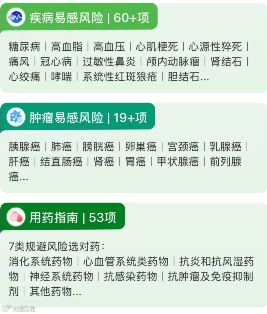 查👉疾病肿瘤易感/用药指导/遗传特质