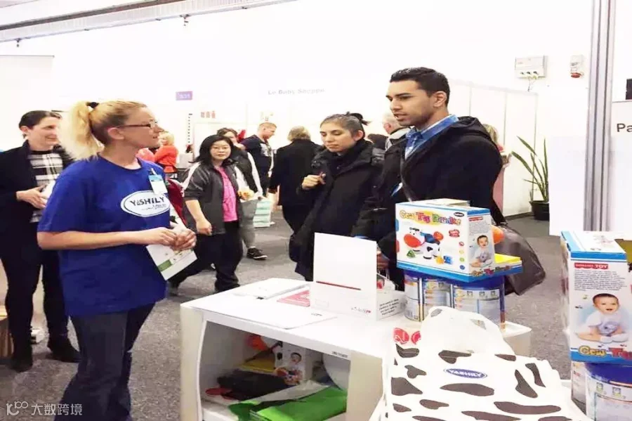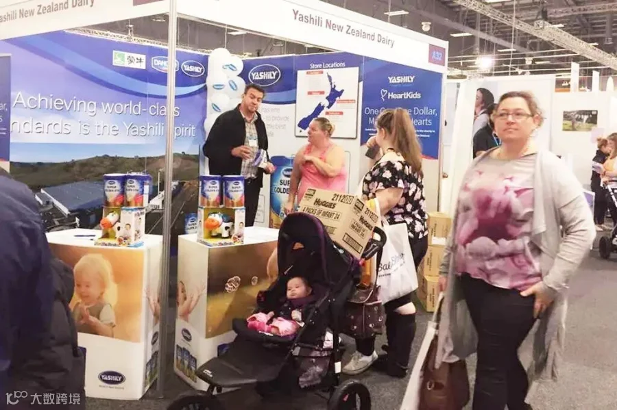 (雅士利展位前,新西兰妈妈们向工作人员资讯相关信息)