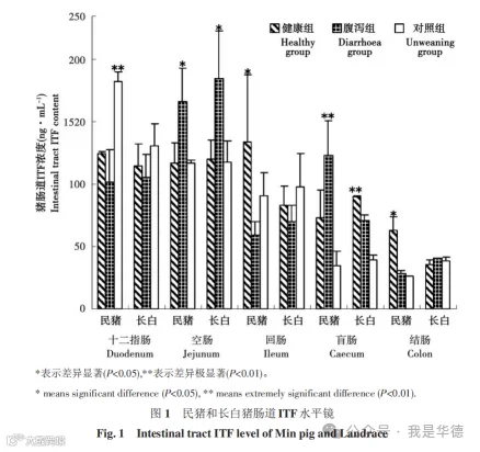本试验表明,仔猪断奶后肠道ITF含量变化与仔猪断奶后肠道损伤和腹泻有重要关系。断奶仔猪维持较稳定的肠道ITF含量,是保证肠道健康、减少腹泻发生的重要的生理基础。