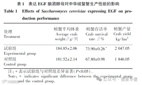 而本试验旨在研究酿酒酵母表达EGF对长江水系中华绒螯蟹生长性能、肠道发育以及免疫功能的影响,评估EGF在水产上实际应用的有效性;对EGF在水产饲料中的后期应用提供参考价值及意义。