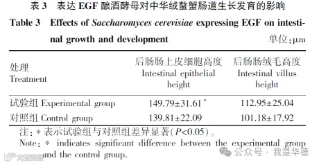 本文评估了EGF对中华绒螯蟹生长性能、肠道发育及免疫功能的影响。从实证结果上看,在螃蟹饲料中添加表达表皮生长因子酿酒酵母能够提高螃蟹的平均体重和产量,促进螃蟹肠道发育,提高肠绒毛高度和肠上皮细胞的高度。