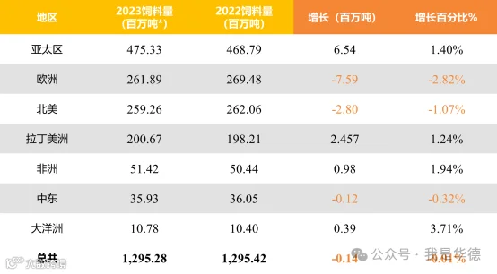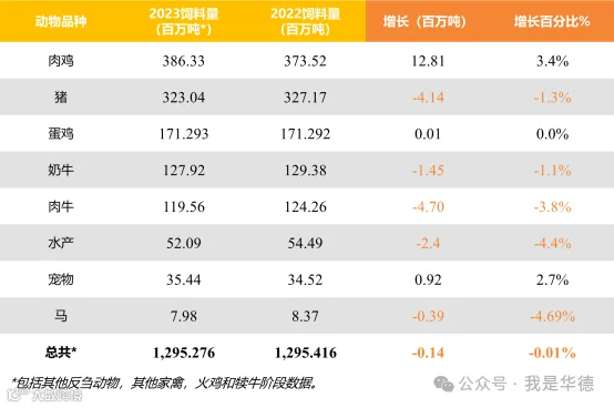 从第13界年度全球饲料调查收集的数据估计,世界饲料产量保持稳定,小幅下降0.2%至12.9亿吨