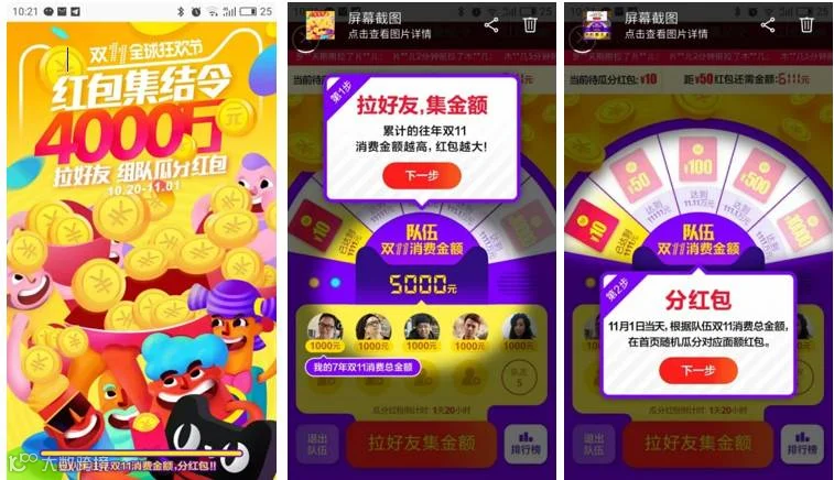 集结5名以上的好友,就能领取与5人往年双十一购物总金额对应的超级大红包!赶紧去拉土豪朋友吧!