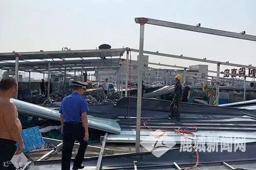 为尽快完成该处光伏发电系统整改工作,执法队员提出由当事人安排专业人员对光伏板进行拆除,再由中队安排人员帮助其搬离光伏板,并对铁皮予以拆除。征得当事人同意后,街道城管办联合执法中队安排人员于8月15日和16日,连续两天帮助当事人对铁皮予以拆除,拆除面积约1600平方米,为其下一步整改提供了便利。