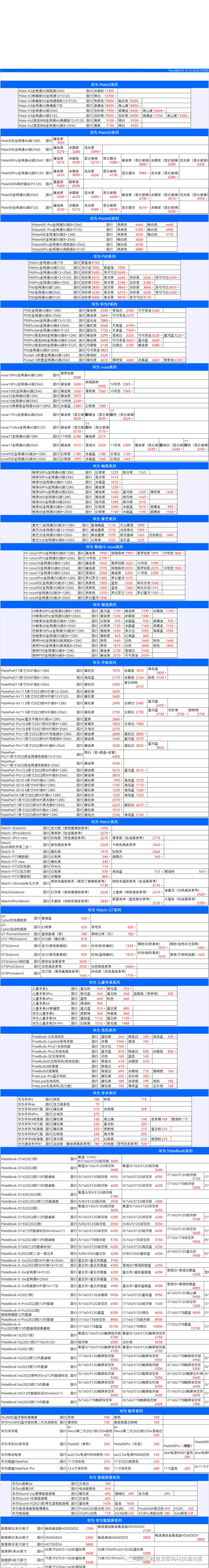 新机报价【2023年7月27日】华为   荣耀 报价 芯烨微 电子科技