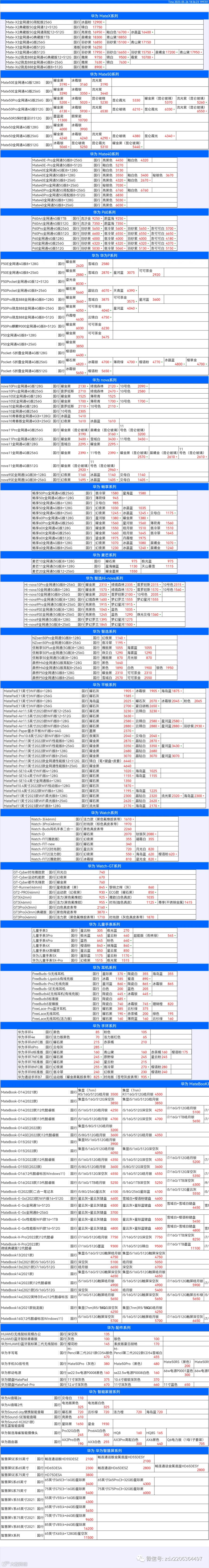 新机报价【2023年5月26日】华为   荣耀 报价 芯烨微 电子科技
