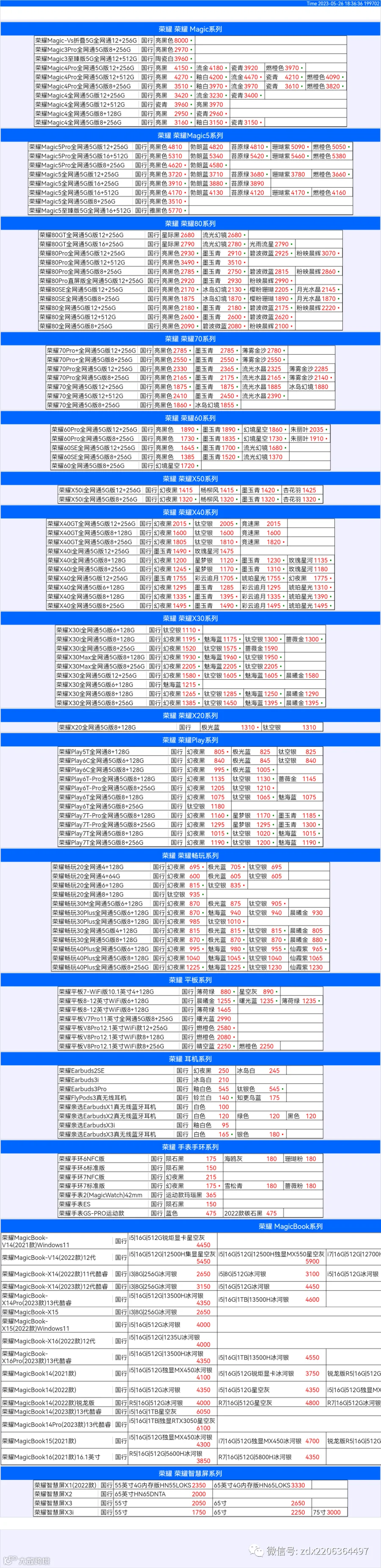 新机报价【2023年5月26日】华为 荣耀 报价