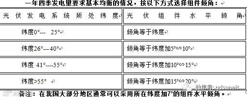 倾斜角是太阳电池方阵平面与水平地面的夹角。伏组件倾角的设计主要取决于光伏发电系统所处纬度和对一年四季发电量分配的要求。不同类型的太阳能光伏发电系统,其最佳安装倾斜角是有所不同的。
