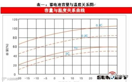 其中: Q: 蓄电池组容量(Ah);K:安全系数,取1.25;I:负荷电流(A);T: 放电小时数(h);η:放电容量系数; t: 实际电池所在地最低环境温度数值;α: 电池温度系数(1/℃),当放电小时率≥10时,取α=0.006; 当放电小时率≥1时,取α=0.008;当放电小时率<1时,取α=0.01。,蓄电池容量与温度关系可以由公式导出也可见表一