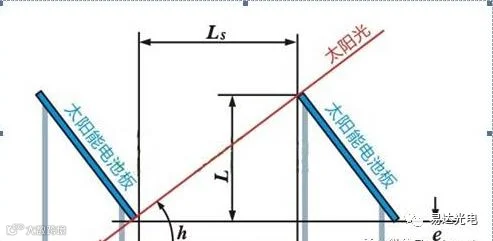 以上发电量的计算,是在完全没有阴影的前提下得到的。另外,如果方阵是前后水平放置时,后面的方阵与前面的方阵之间距离接近后,前边方阵的阴影会对后边方阵的发电量产生影响。假如太阳能电池板垂直高度为L,其南北方向的阴影长度为Ls,太阳高度(仰角)为h,方位角为B,方阵之间的水平距离