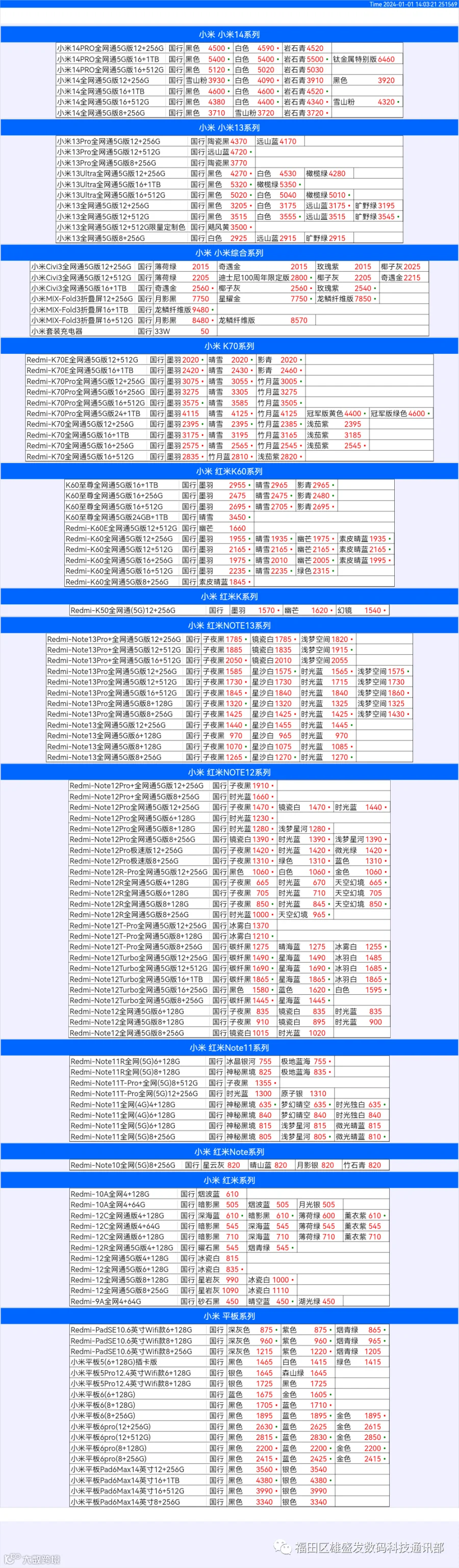 新机报价【2024年1月1日】小米  红米   黑鲨   报价 芯烨微 电子科技
