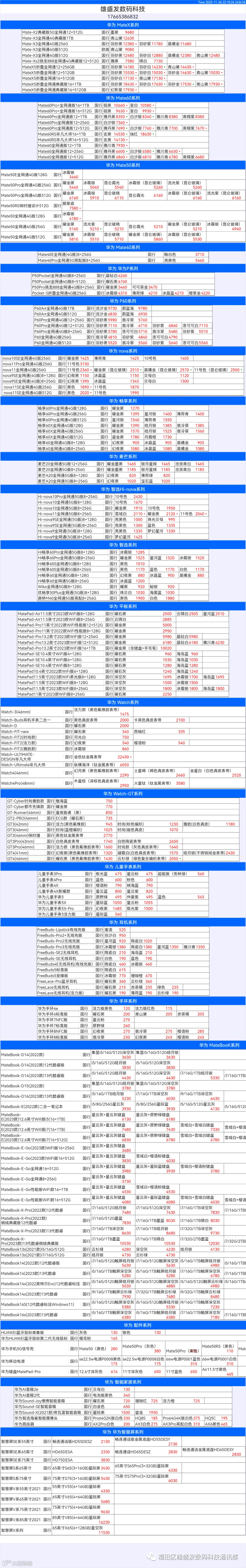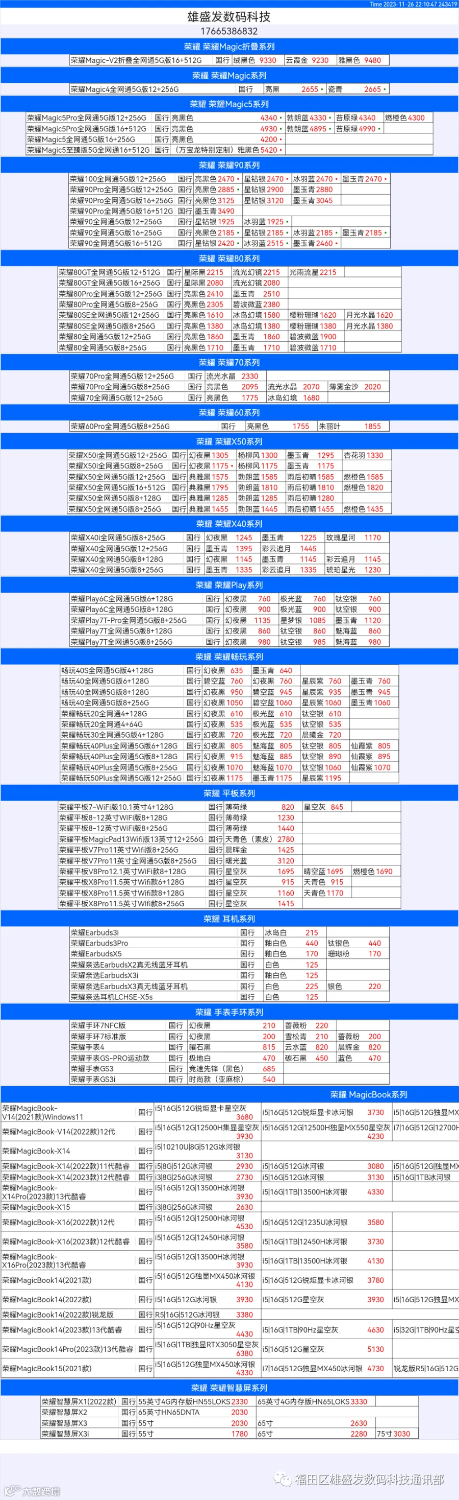 新机报价【2023年11月26日】华为   荣耀 报价 芯烨微 电子科技