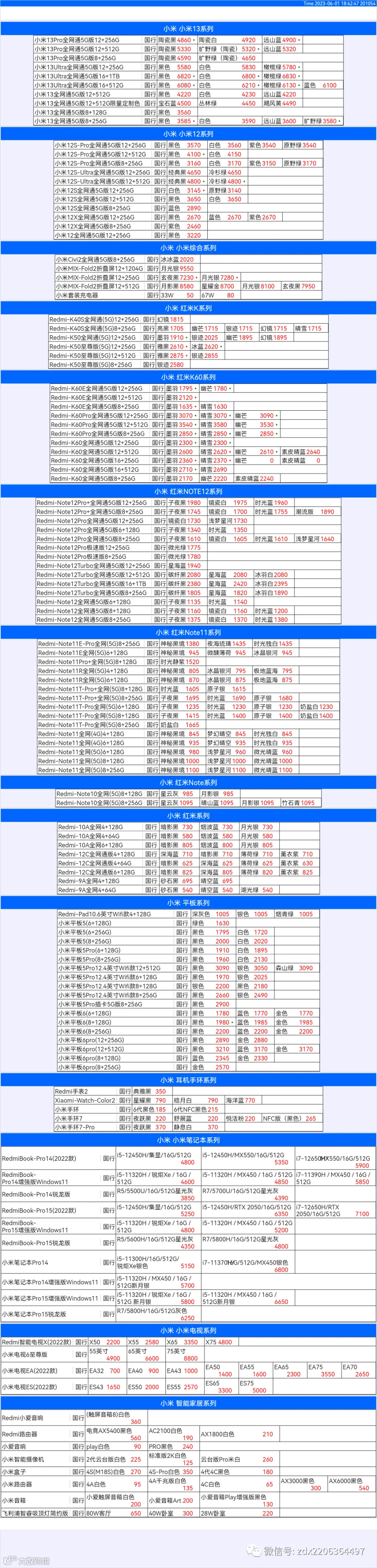 新机报价【2023年6月1日】小米  红米   黑鲨   报价 芯烨微 电子科技
