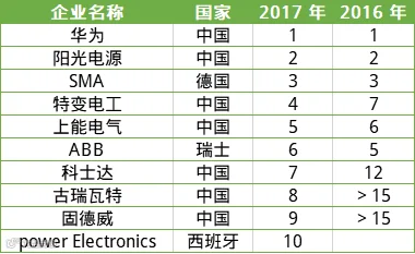 2018年逆变器前十排名出炉