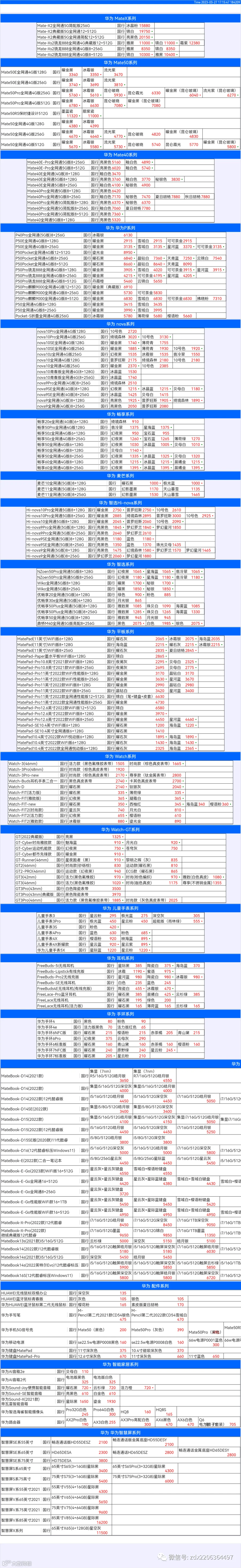 新机报价【2023年3月27日】华为   荣耀 报价 芯烨微 电子科技