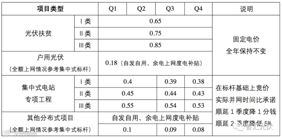 说明:以并网时间为节点确定价格