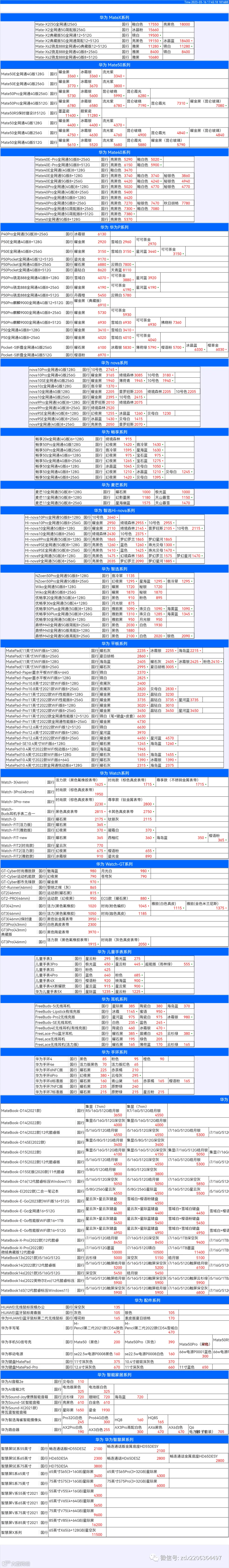 新机报价【2023年3月16日】华为   荣耀 报价 芯烨微 电子科技