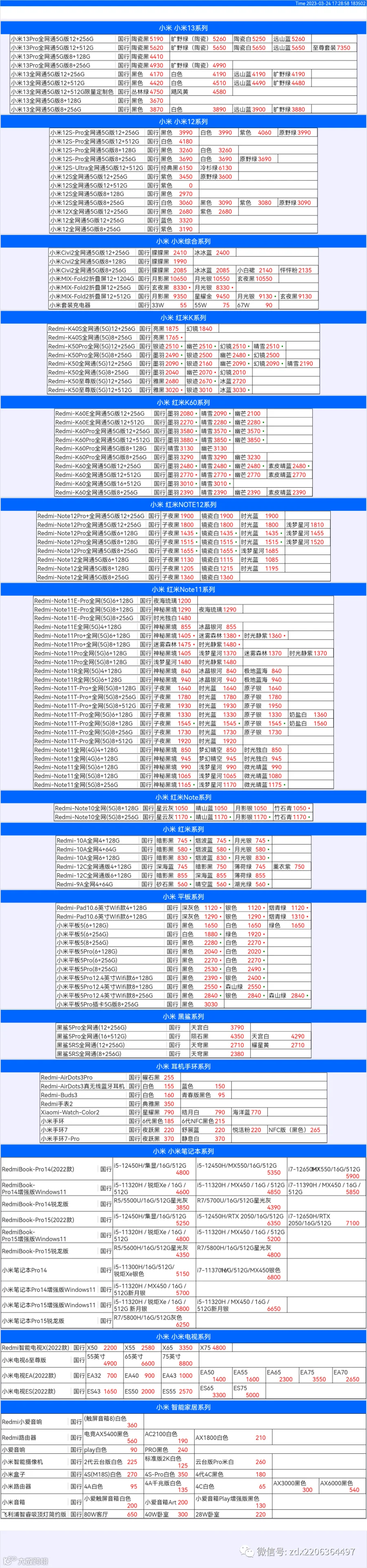 新机报价【2023年3月24日】小米  红米   黑鲨   报价 芯烨微 电子科技