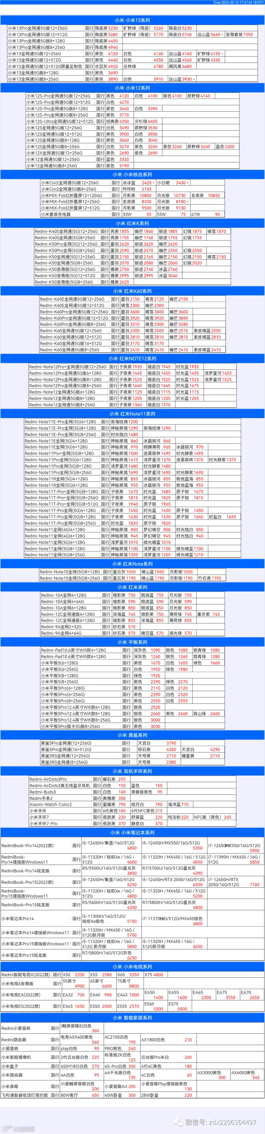 新机报价【2023年3月14日】小米  红米   黑鲨   报价 芯烨微 电子科技