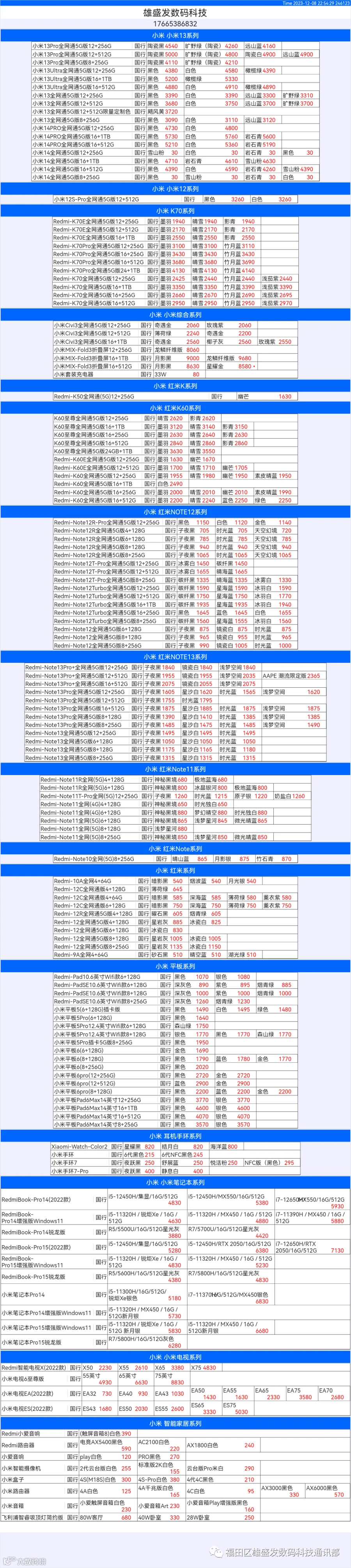 新机报价【2023年12月8日】小米  红米   黑鲨   报价 芯烨微 电子科技