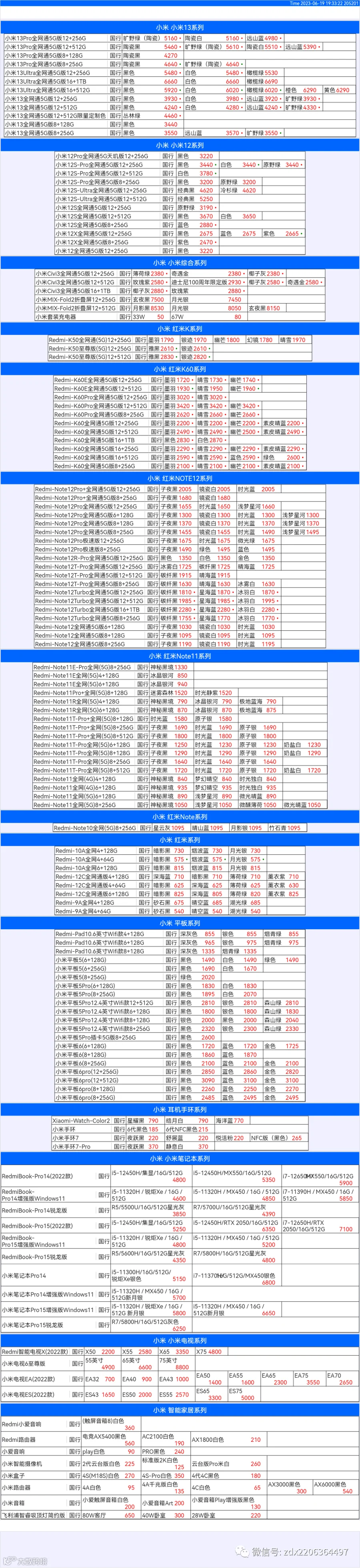 新机报价【2023年6月19日】小米  红米   黑鲨   报价 芯烨微 电子科技