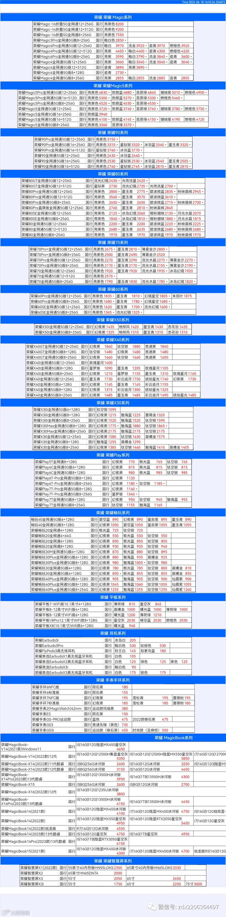 新机报价【2023年6月18日】华为   荣耀 报价 芯烨微 电子科技