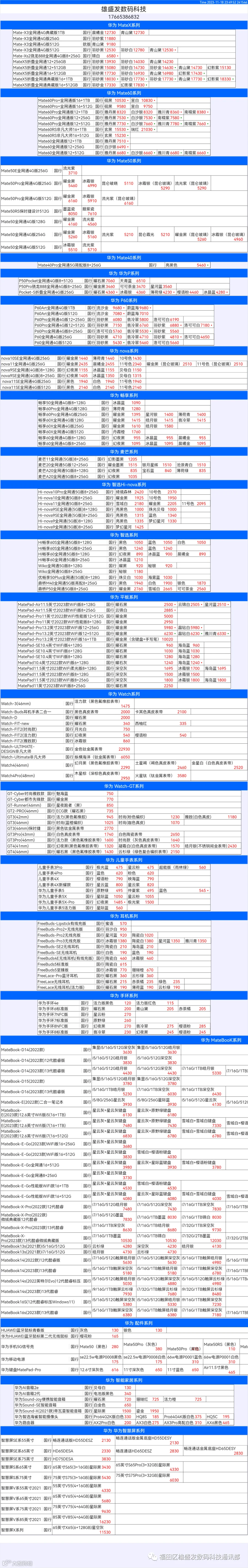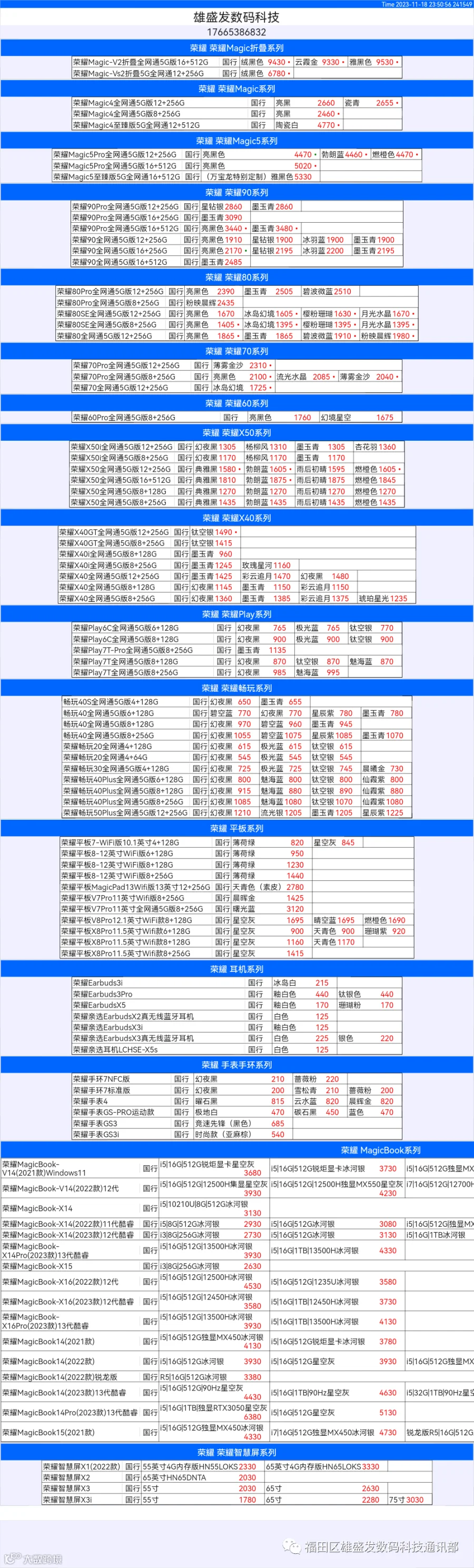 新机报价【2023年11月18日】华为   荣耀 报价 芯烨微 电子科技