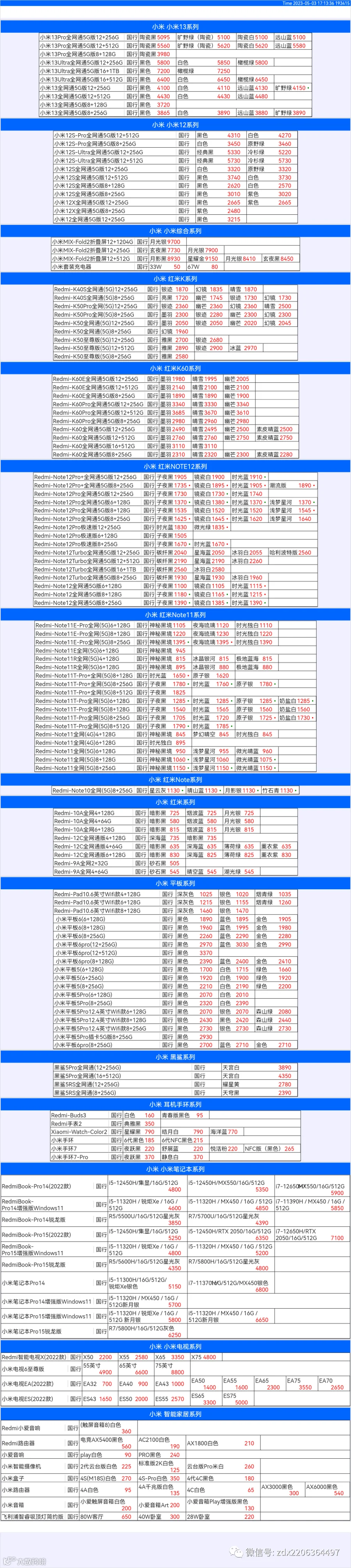 新机报价【2023年5月3日】小米  红米   黑鲨   报价 芯烨微 电子科技