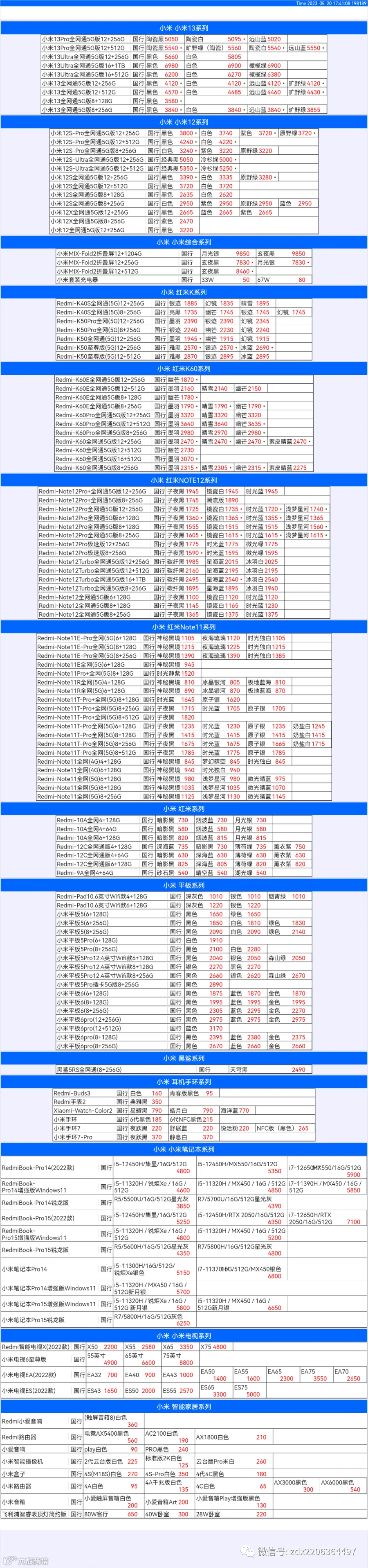 新机报价【2023年5月20日】小米  红米   黑鲨   报价 芯烨微 电子科技
