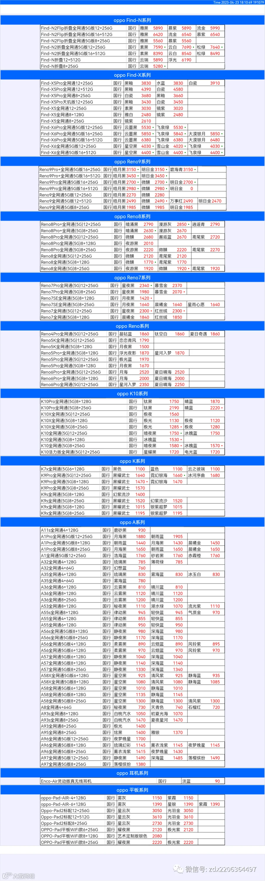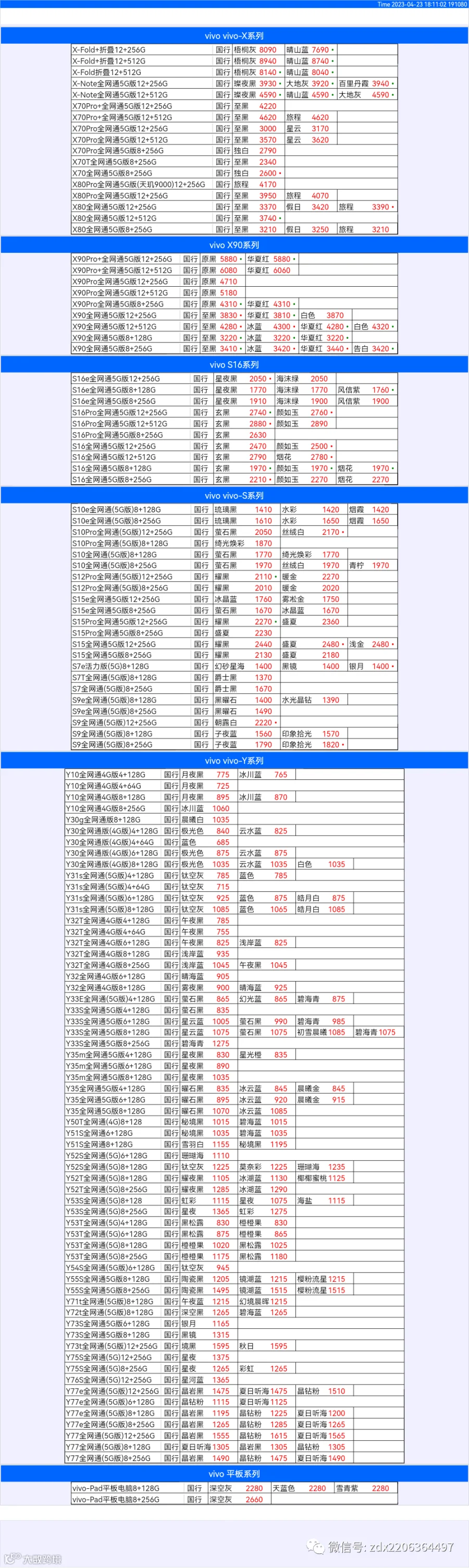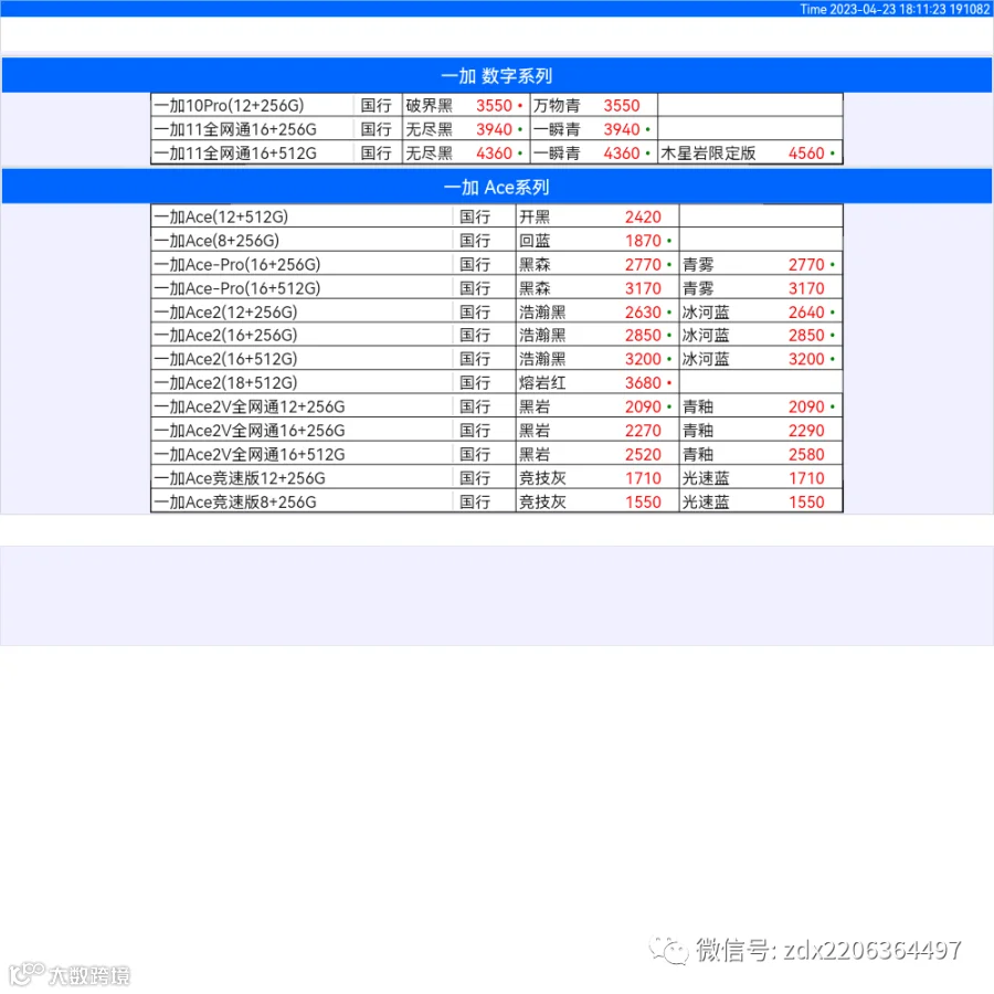 新机报价【2023年4月23日】OPPO   VIVO  IQOO   一加   真我 芯烨微 电子科技