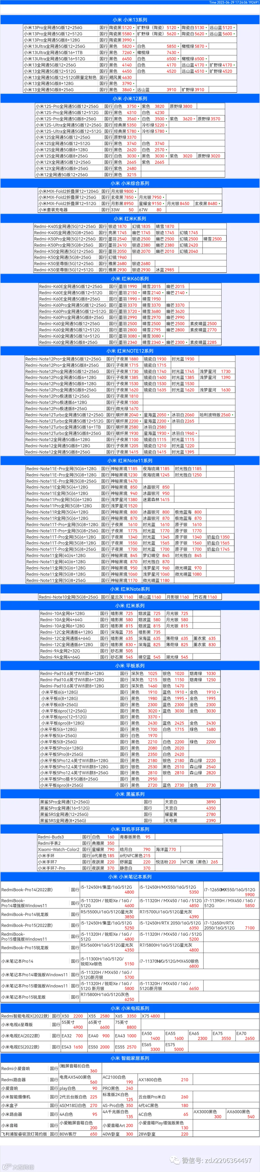 新机报价【2023年4月29日】小米  红米   黑鲨   报价 芯烨微 电子科技