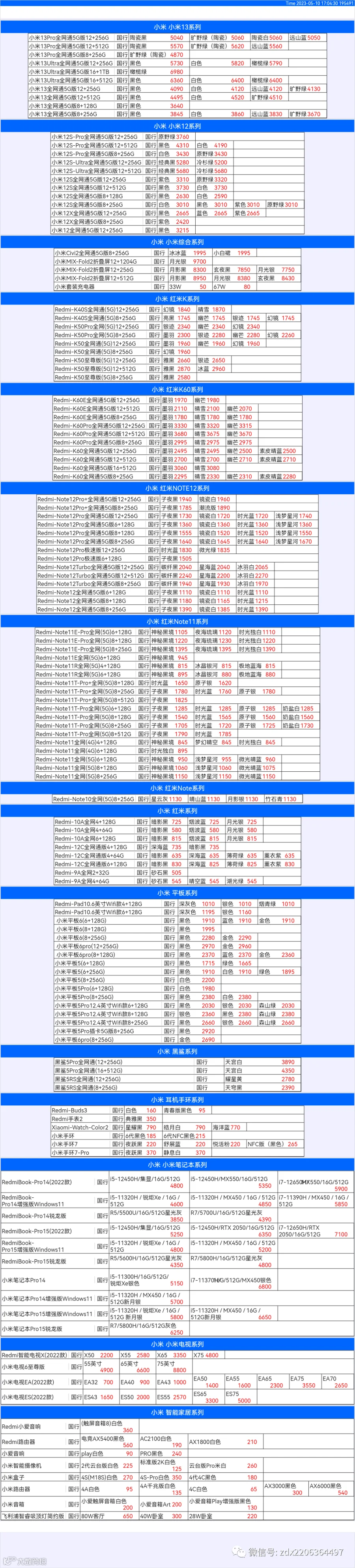 新机报价【2023年5月10日】小米  红米   黑鲨   报价 芯烨微 电子科技