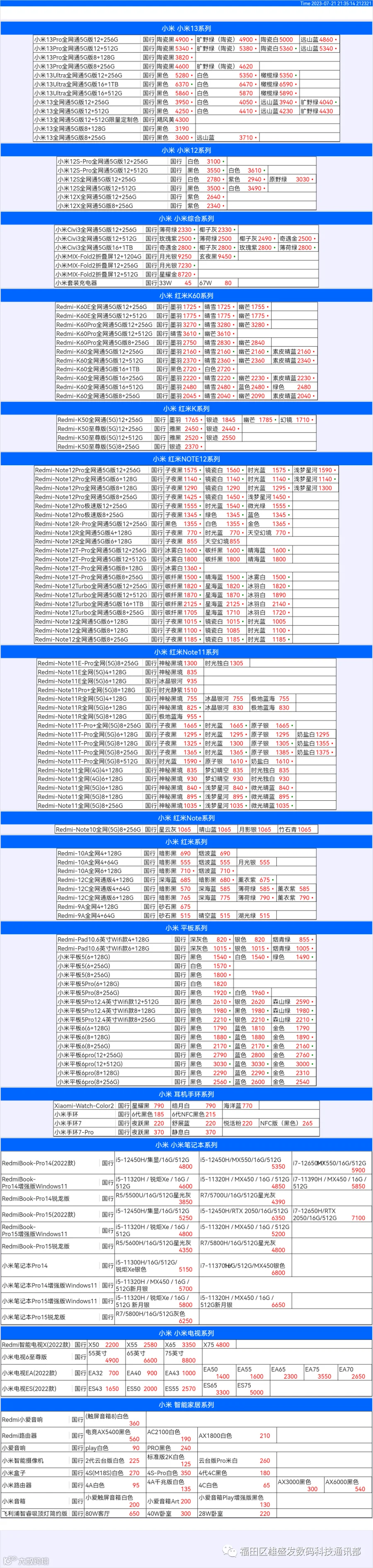 新机报价【2023年7月21日】小米  红米   黑鲨   报价 芯烨微 电子科技