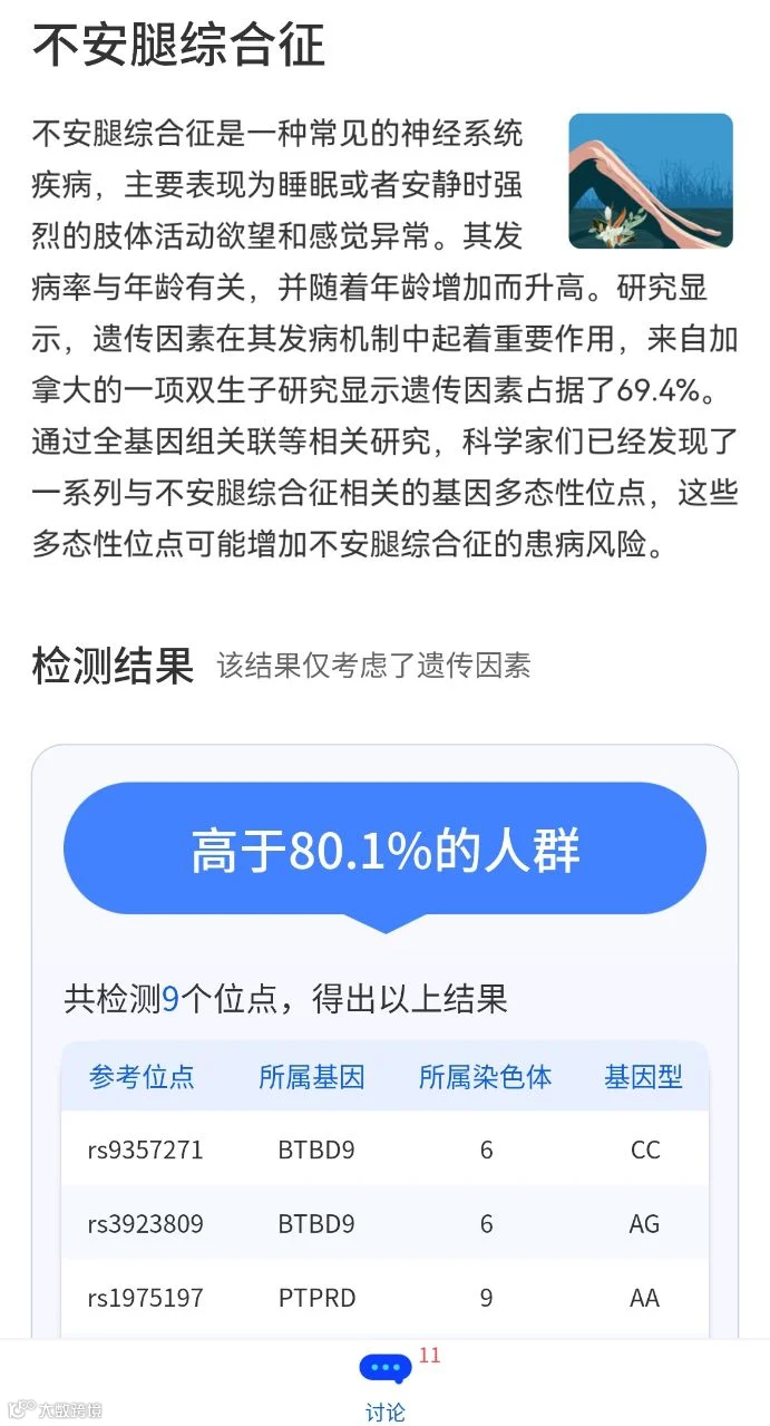 说到这儿,快打开你的基因宝App-微解读看看你的不安腿综合症的风险吧!