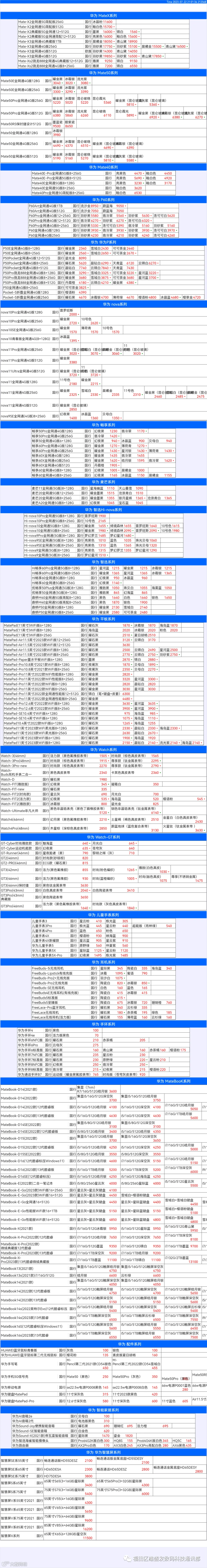 新机报价【2023年7月22日】华为   荣耀 报价 芯烨微 电子科技