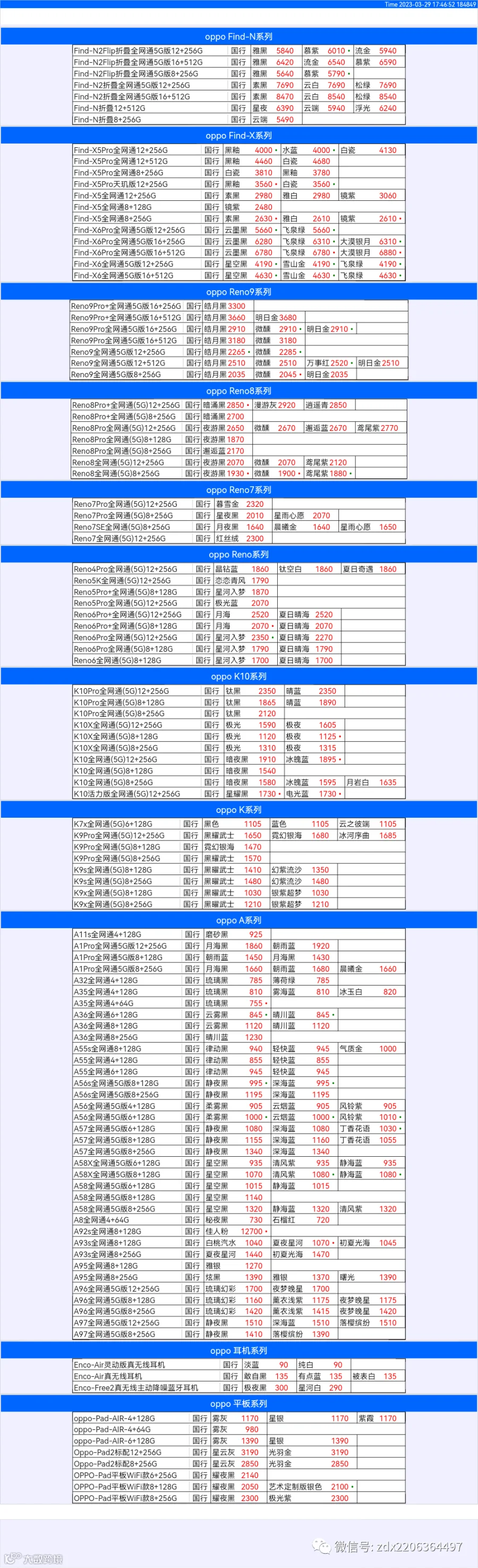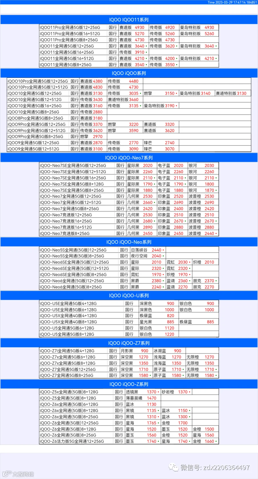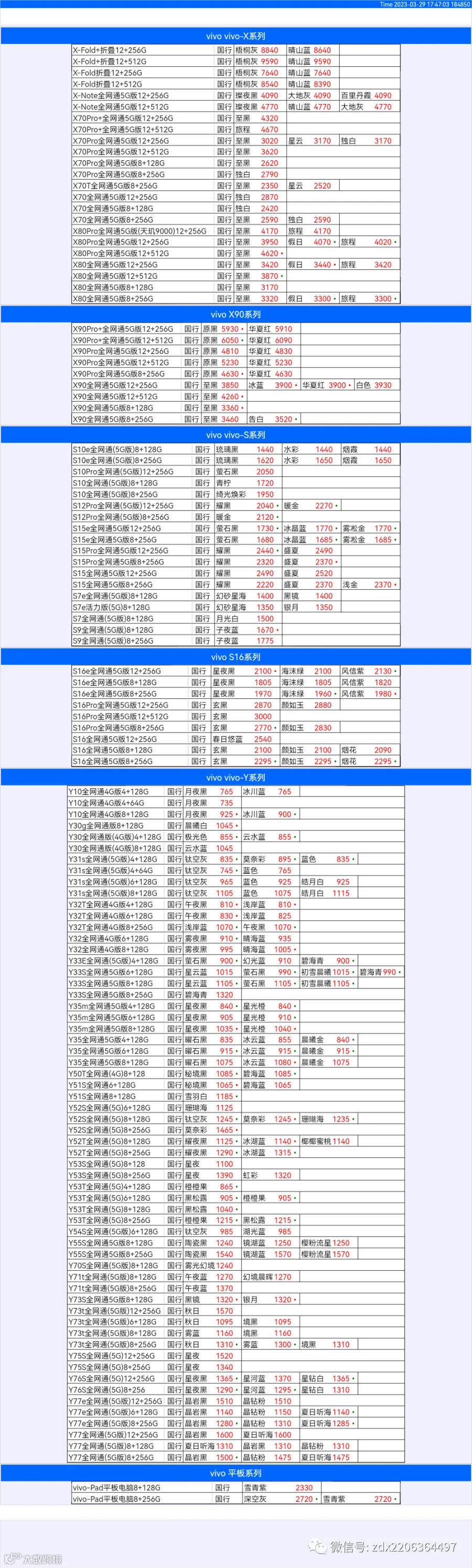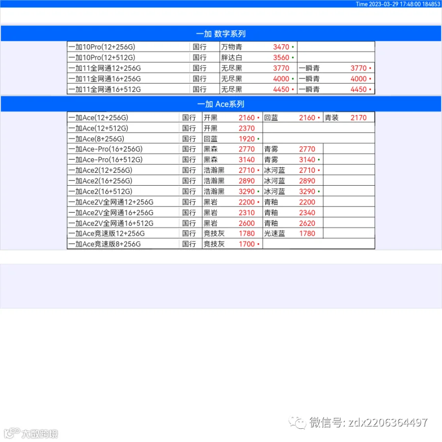 新机报价【2023年3月29日】OPPO   VIVO  IQOO   一加   真我 芯烨微 电子科技