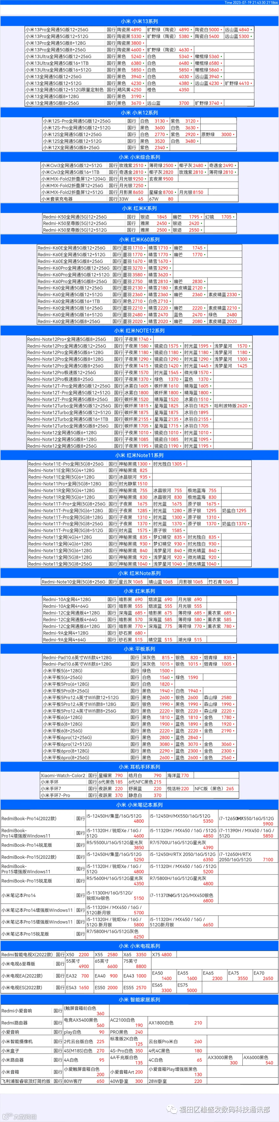 新机报价【2023年7月19日】小米  红米   黑鲨   报价 芯烨微 电子科技