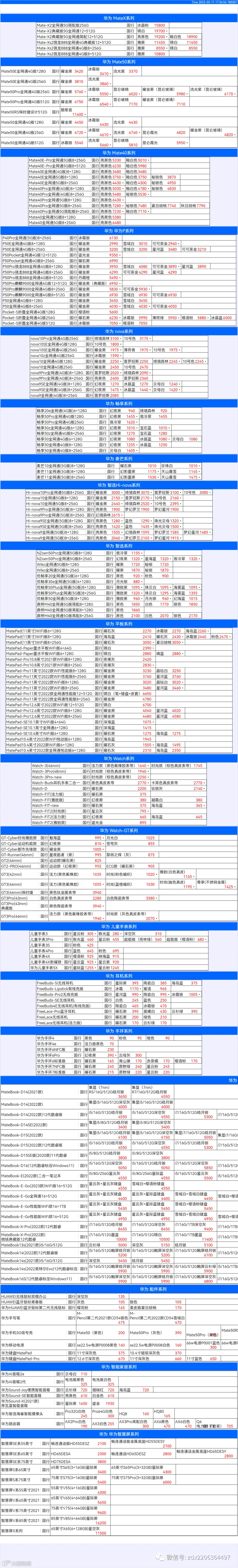 新机报价【2023年3月11日】华为   荣耀 报价 芯烨微 电子科技