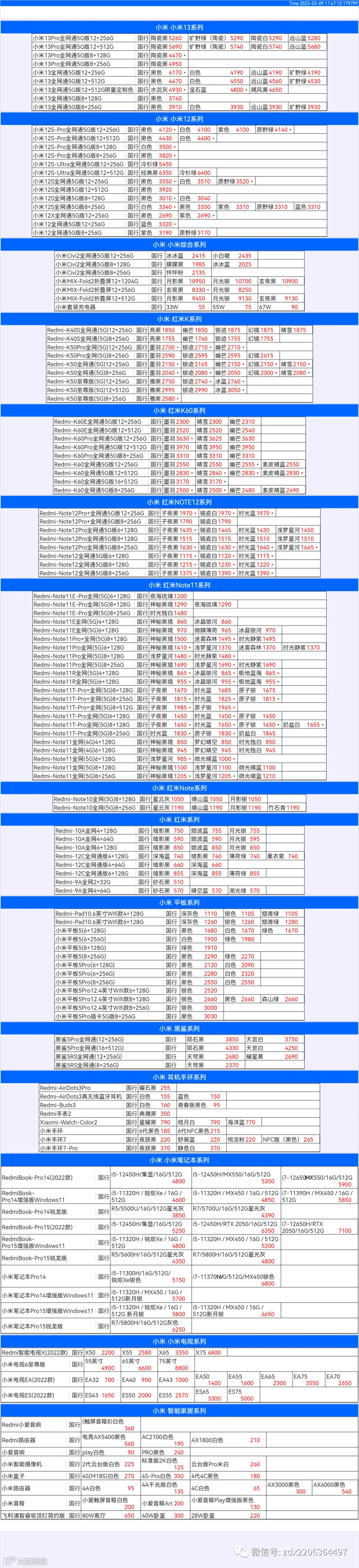 新机报价【2023年3月9日】小米  红米   黑鲨   报价 芯烨微 电子科技