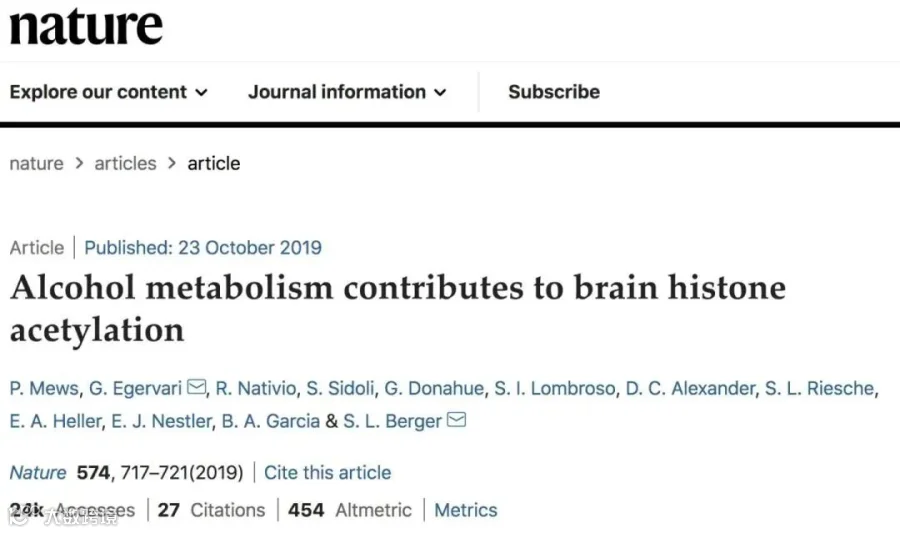 2019年,宾夕法尼亚大学的P. Mews、G. Egervari和S. L. Berger研究发现,酒精代谢产生的乙酸,会进入大脑,乙酰化前额叶和海马区细胞的组蛋白,改变神经细胞表观遗传,形成酒瘾。这一研究发表在Nature上 。