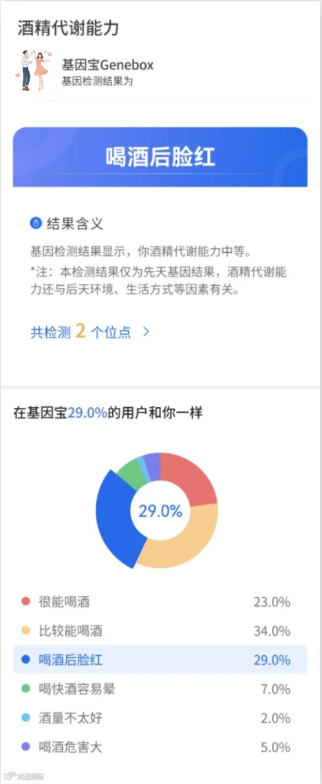 所以,能不能喝酒,以及喝酒会不会对你的健康造成影响早已经写在了你的基因里,快打开基因宝App看看你的酒精代谢能力如何吧!