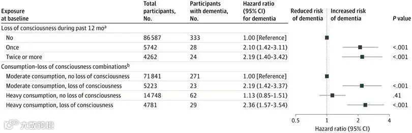 一项汇总了欧洲四国发表在JAMA Network Open上的 13万多名参与者情况的分析显示,适量饮酒(每周酒精摄入量低于112克)但曾有喝酒失去意识的经历,与痴呆发生风险翻倍有关!