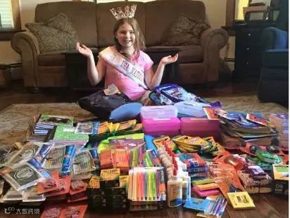 “用两次义卖得到的500美金,买了很多文具给那些需要文具的小朋友”