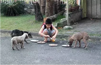 Carlitos将省下来的零用钱给流浪狗买花生酱