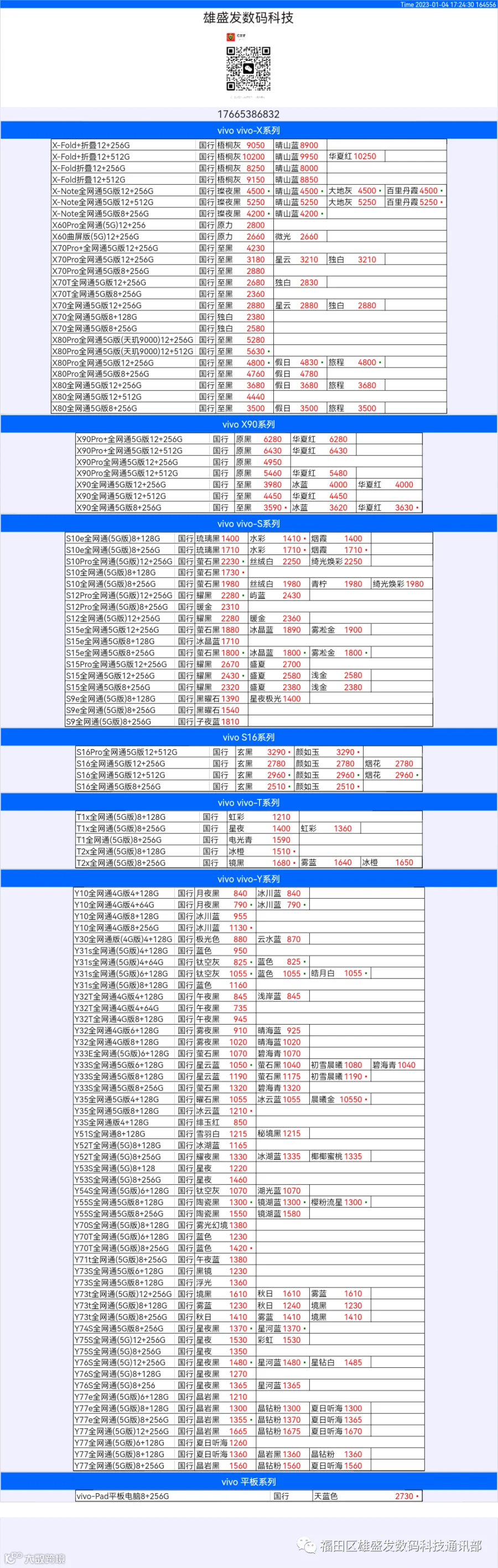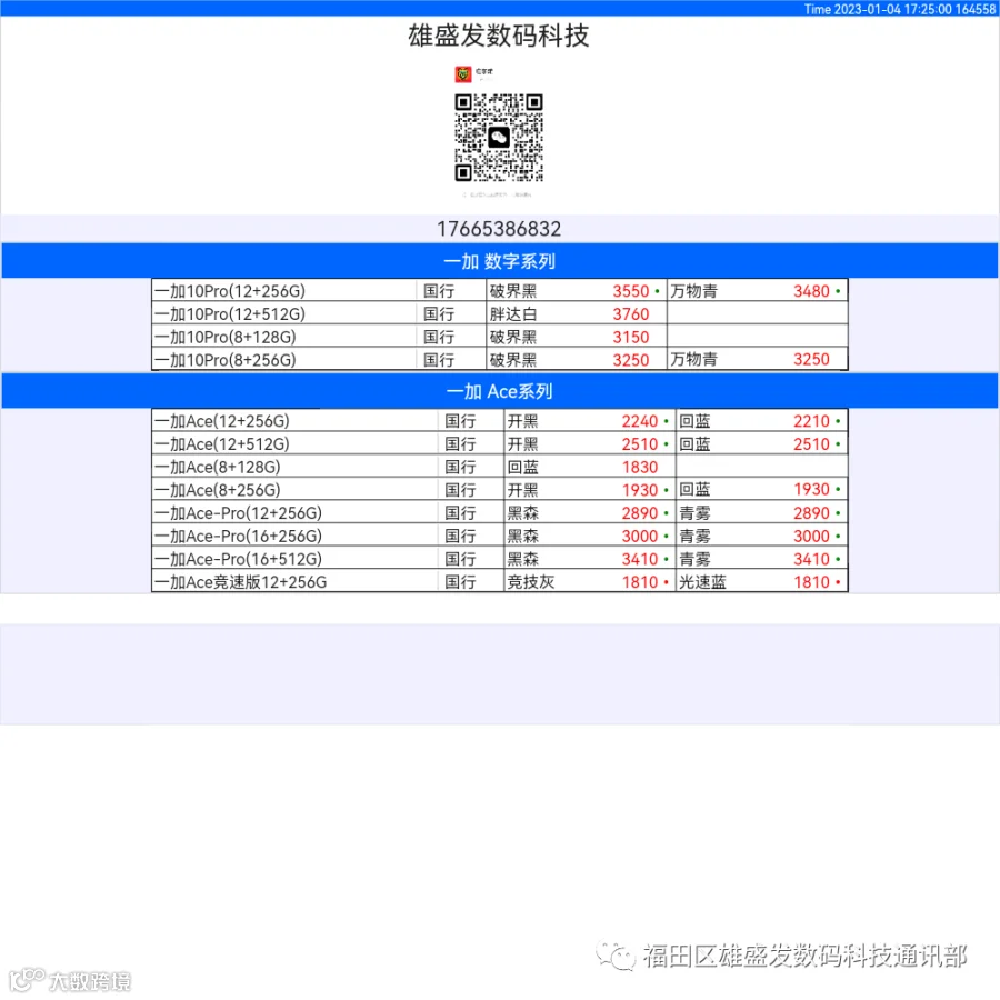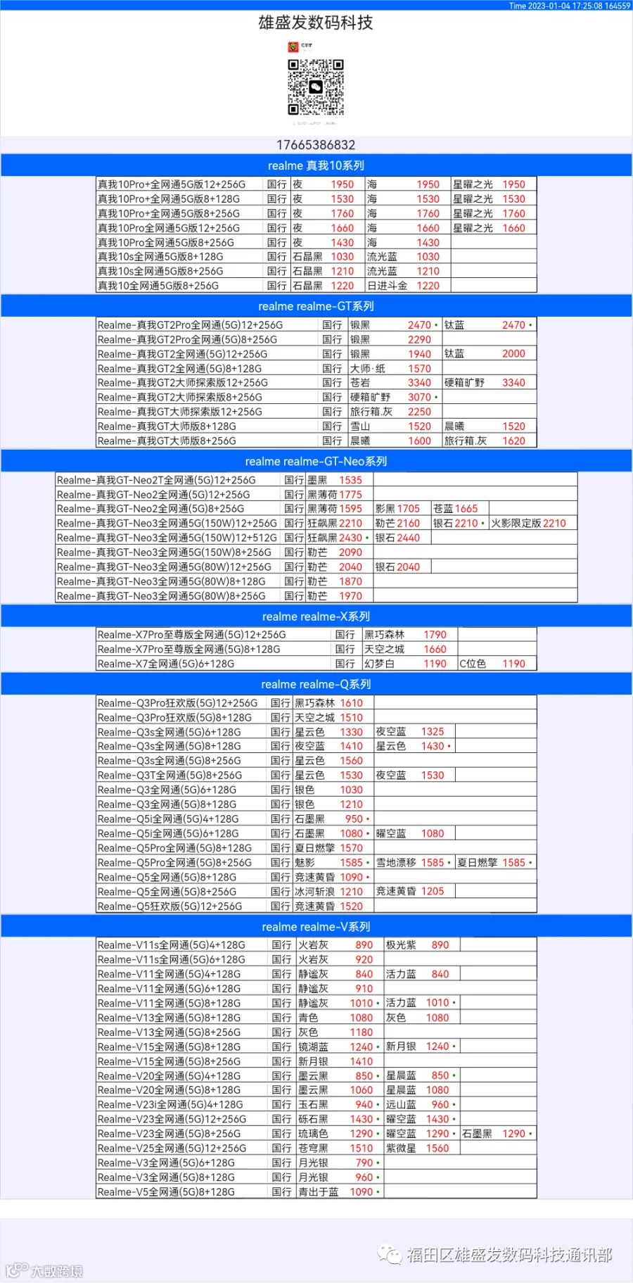 新机报价【2022年1月5日】OPPO   VIVO  IQOO   一加   真我 芯烨微 电子科技