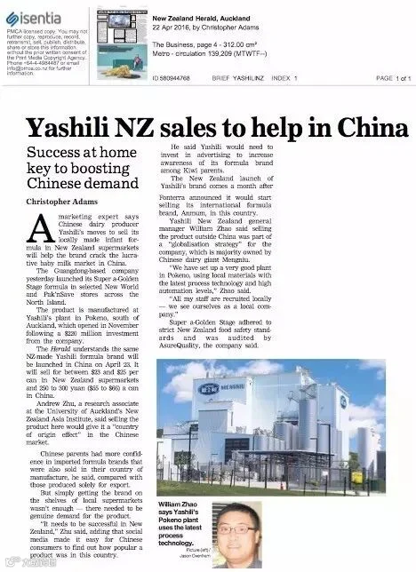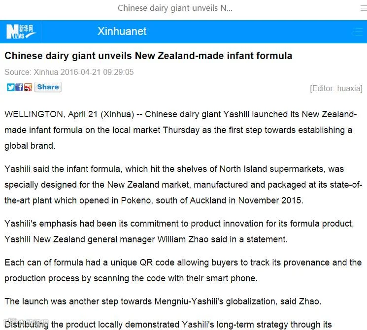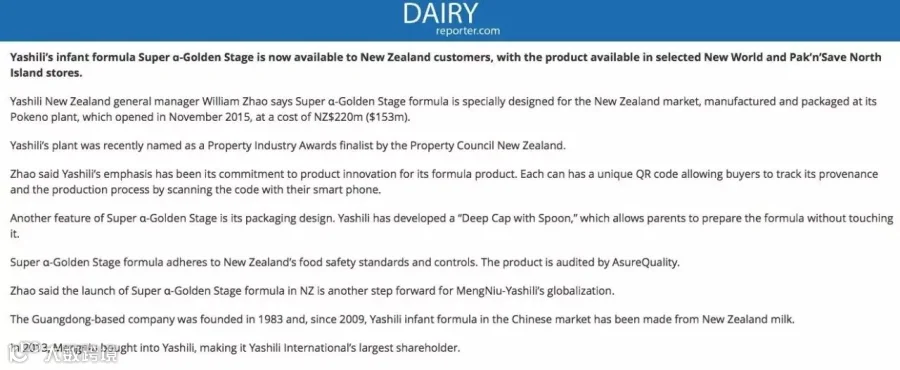 自从雅士利新西兰工厂于2015年11月正式投入产出以来,雅士利也成为中国唯一一家在新西兰不依靠收购或贴牌生产,而是通过自建工厂生产的奶粉品牌,由此也引起了国内外媒体的高度关注。