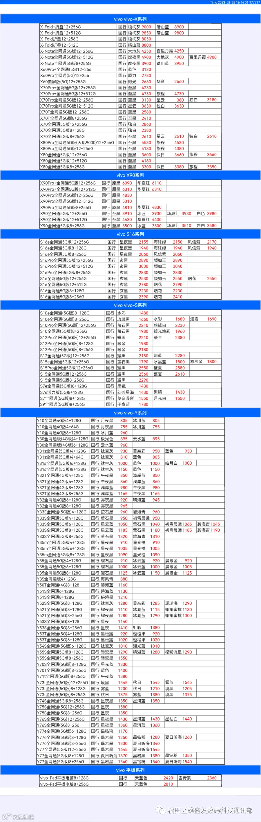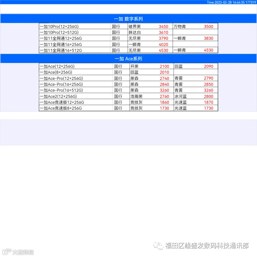 新机报价【2023年2月28日】OPPO   VIVO  IQOO   一加   真我 芯烨微 电子科技