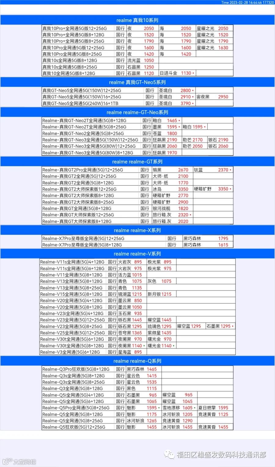 新机报价【2023年2月28日】OPPO VIVO IQOO 一加 真我
