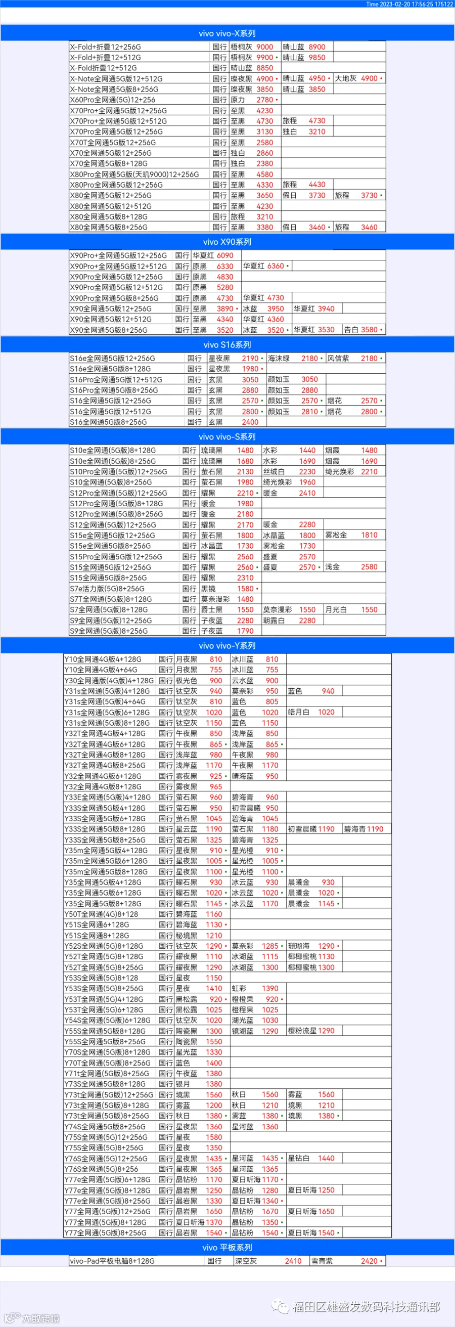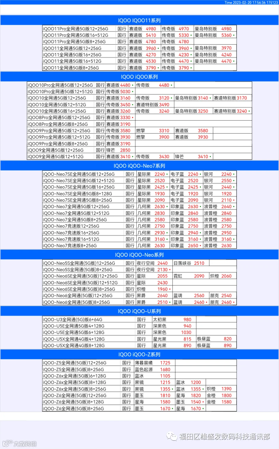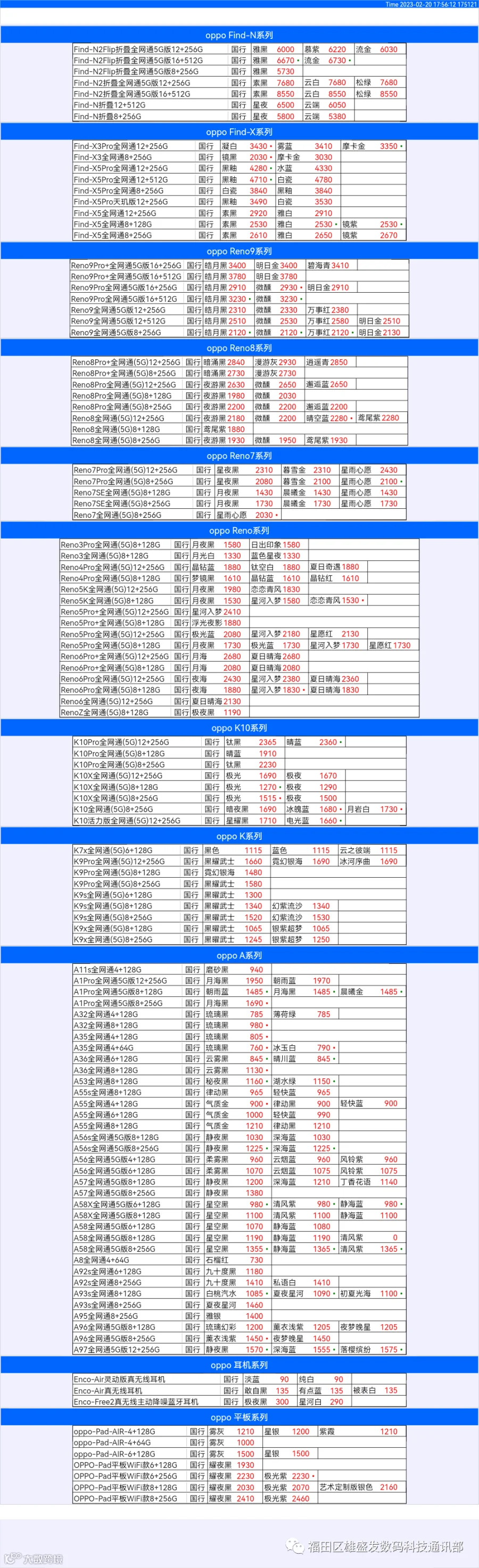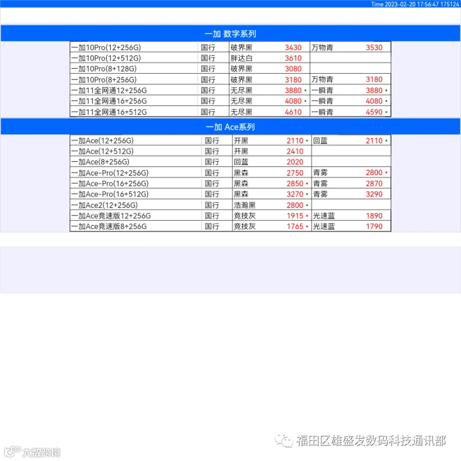 新机报价【2023年2月20日】OPPO   VIVO  IQOO   一加   真我 芯烨微 电子科技