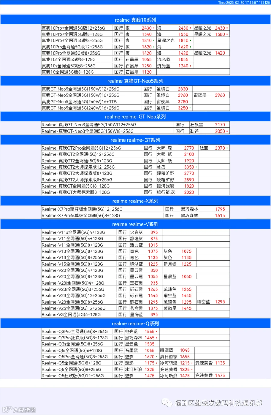 新机报价【2023年2月20日】OPPO VIVO IQOO 一加 真我